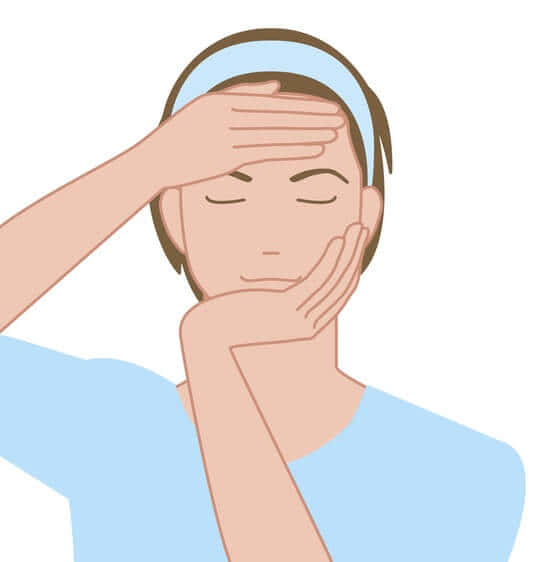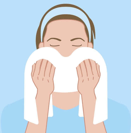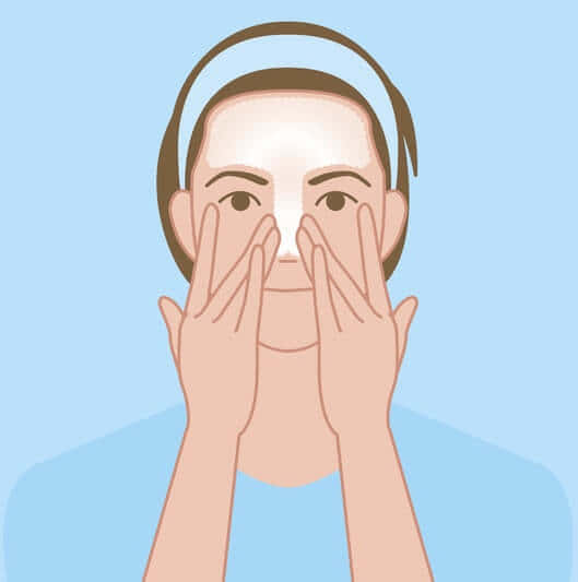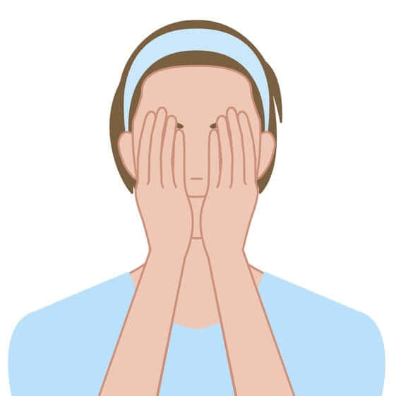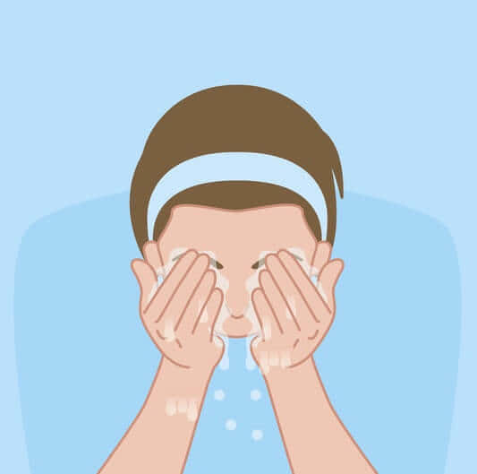 - 水またはぬるま湯で顔全体をすすぐ