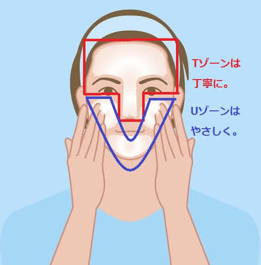 意識してもらいたいのは、おでこや鼻周りのTゾーンは皮脂の分泌が多いので、しっかりめに洗うこと。