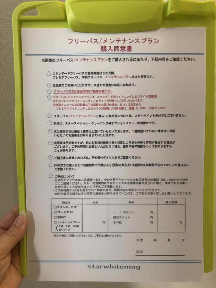 スターホワイトニングさんでのフリーパスプランの申し込みは、上記の書類提出で完了します。