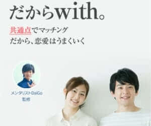 一般的に男性ユーザーが多いマッチングサービスですが、withは男性と女性の比率が半々。